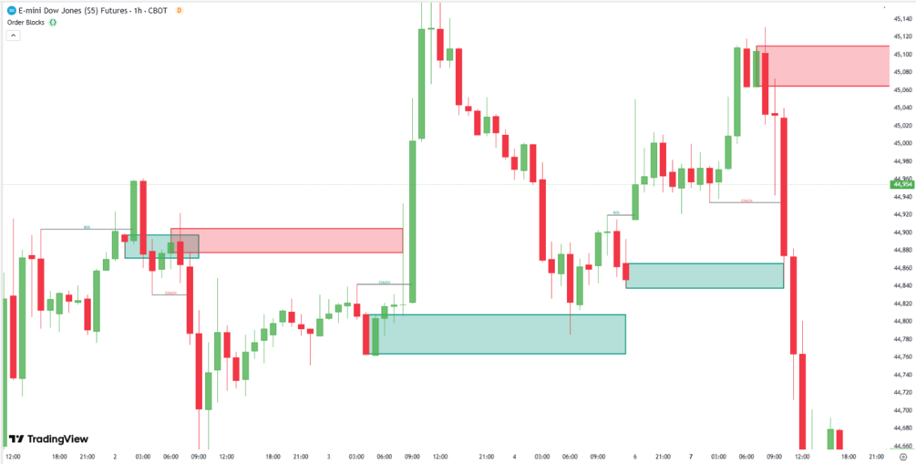 • Auto-detects bullish and bearish order blocks where institutions load and unload